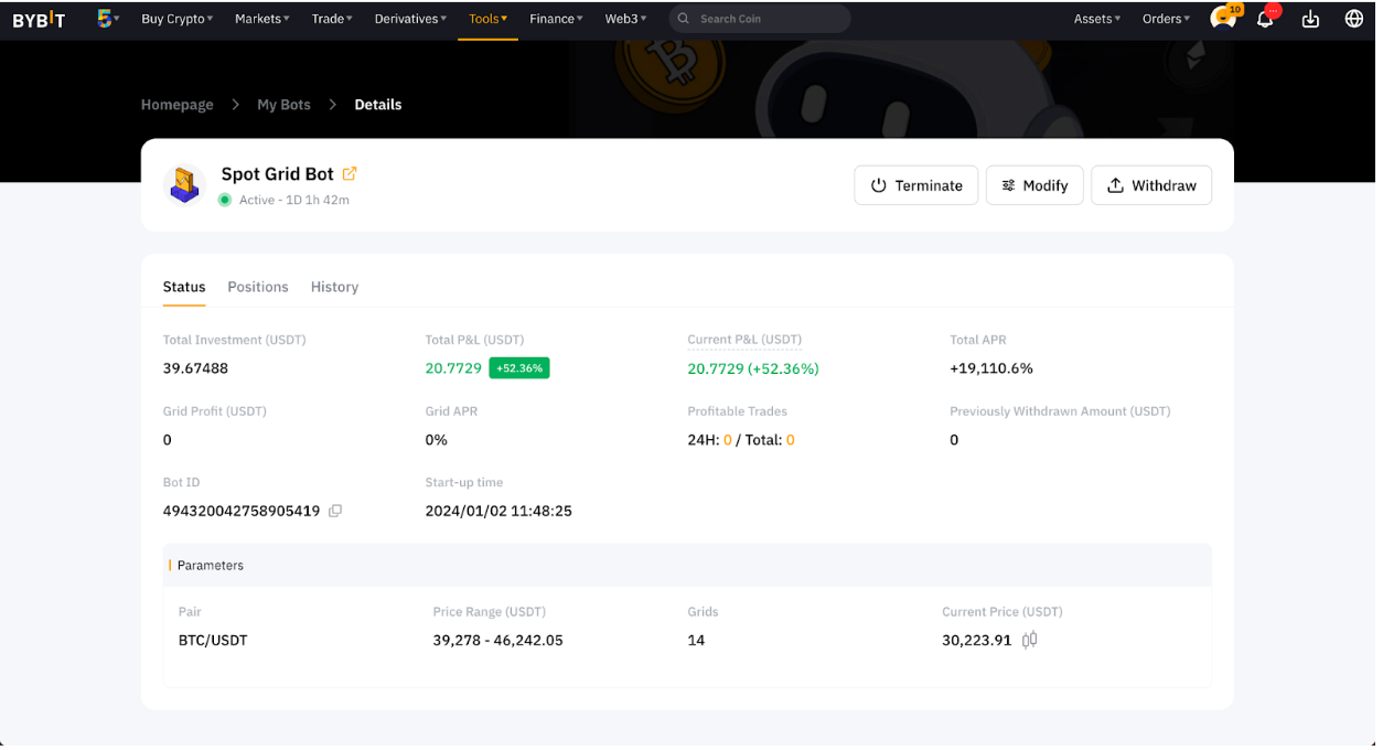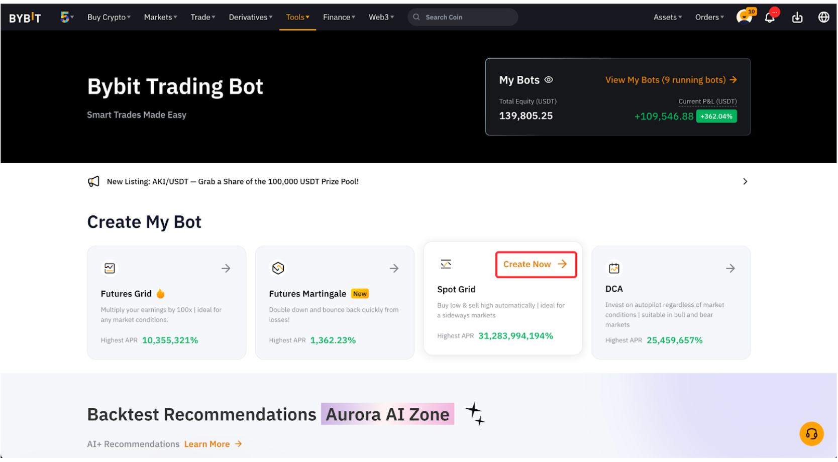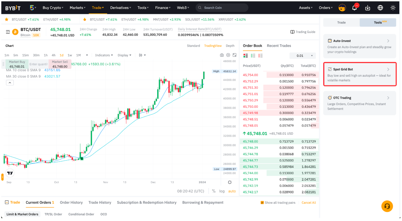 Here’s a step-by-step guide that will walk you through the process of creating your first Spot Grid Bot on Bybit.