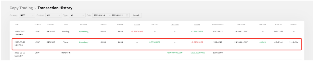 本文将通过以下示例,向您介绍如何确定跟单交易的盈亏和资产净值。请注意,对于 2023 年 3 月 30 日之前开仓的订单,仓位均价变更历史不可用。