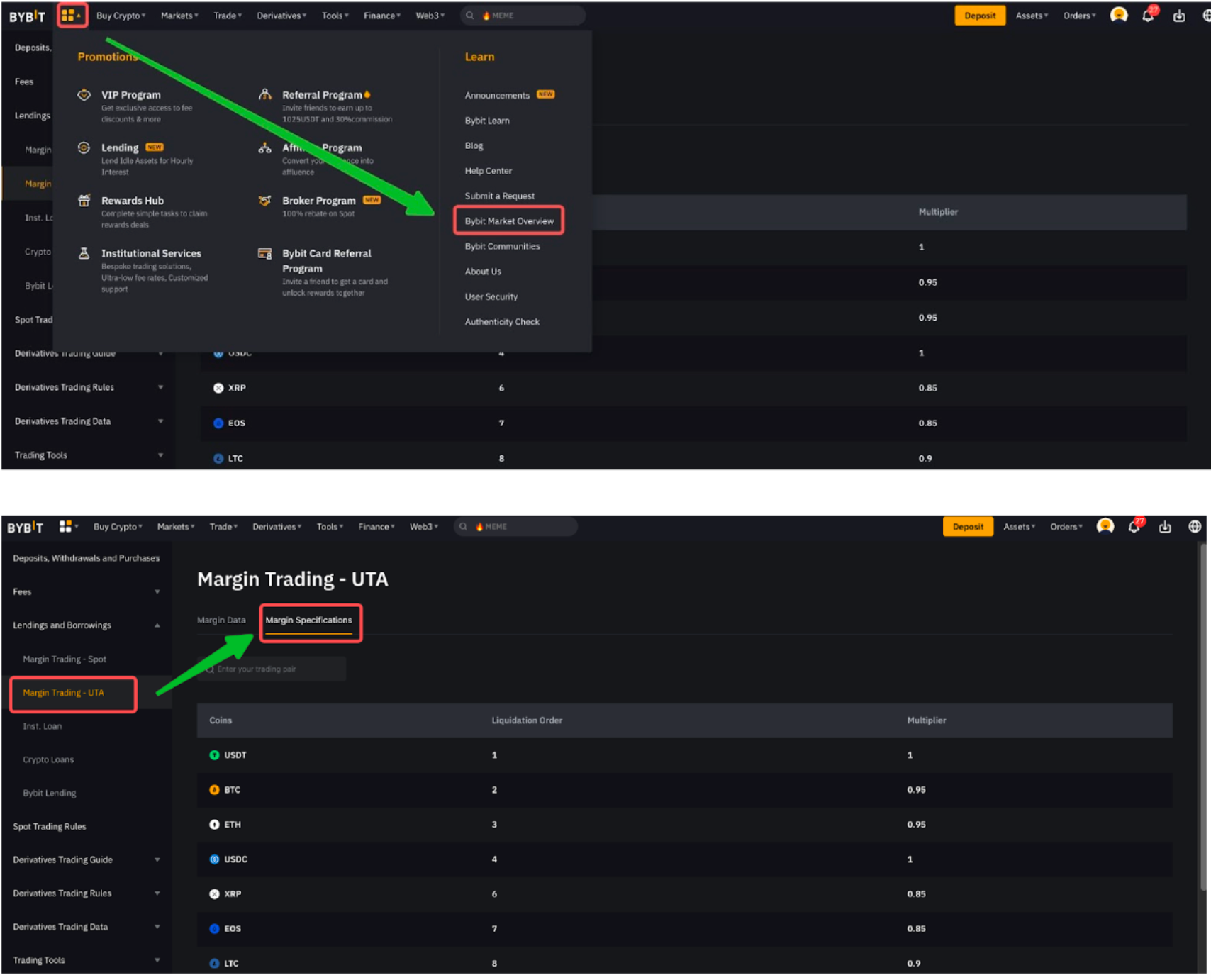 Bybit 将根据市场行情定期审核和更新抵押价值折算率。
