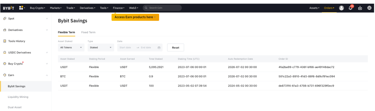 此外,您还可以在理财订单 → Bybit 储蓄下找到订单记录。