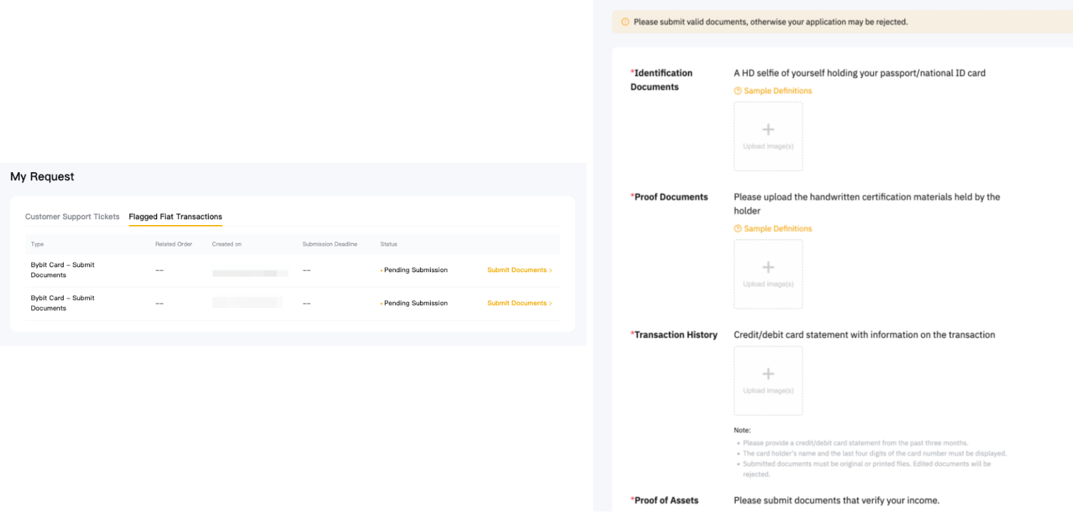 在申请 Bybit Card 亚太地区卡时,您需要提供以下文件: