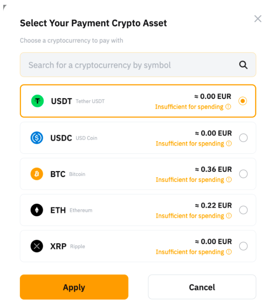 Bybit Card 可用的币种由一种法币和多种加密货币组成。