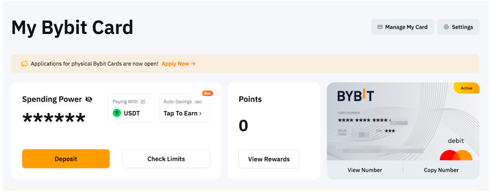 Bybit Card 有效期为 3 年。虚拟 Bybit Card 将在到期后自动续期。
