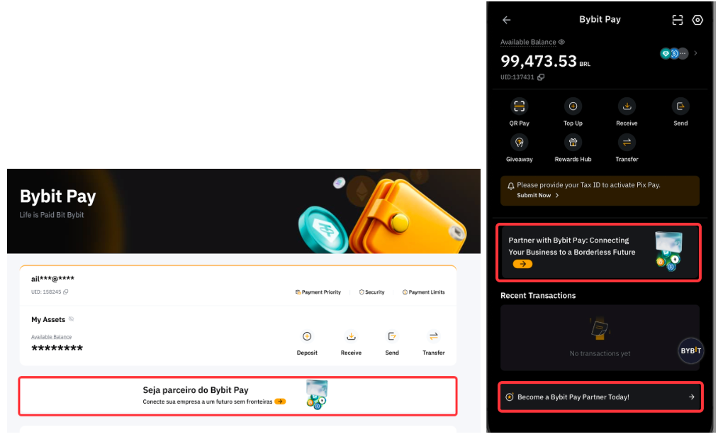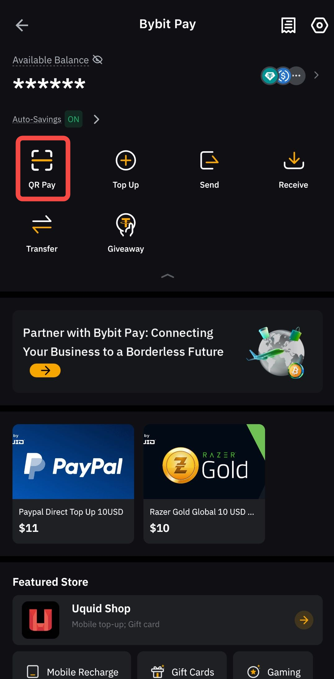 Bybit Pay 支持用户向全球受支持市场中接受 Bybit Pay 的线上和店内商户付款。用户只需扫描商户网站、App 或销售点支付终端上显示的 Bybit Pay 二维码,或在 App 内享受无缝结账体验。