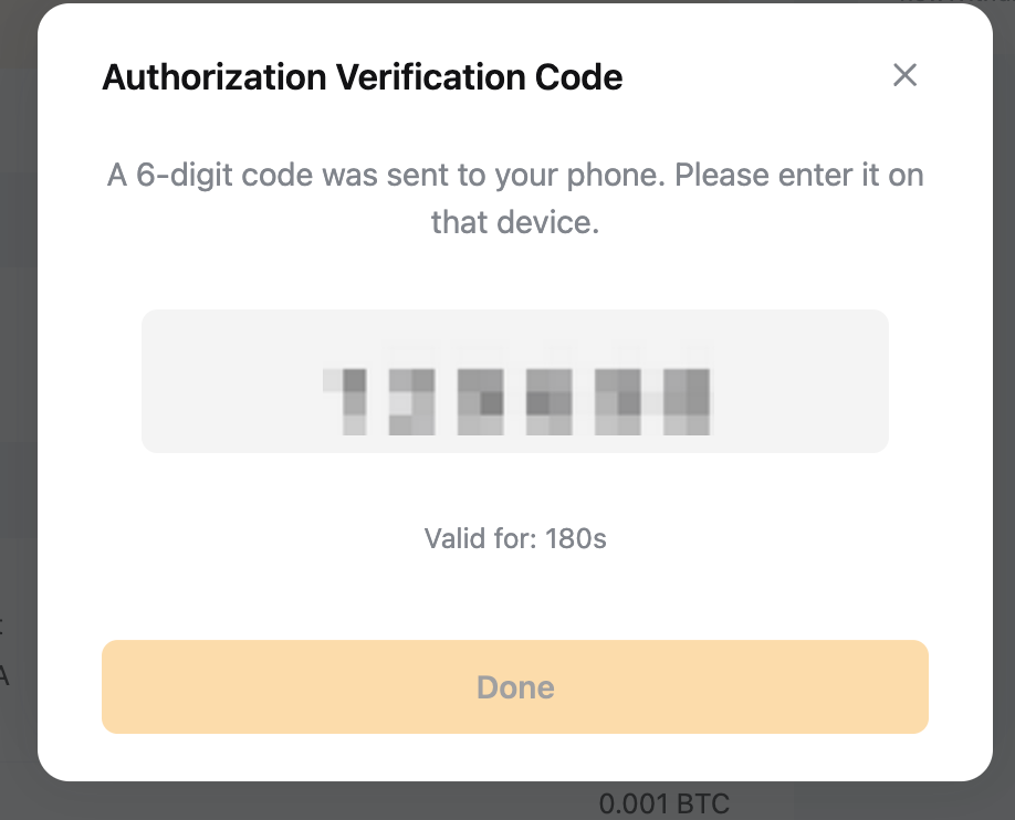 第 2 步:点击确认,即可在备用设备上的 Bybit App 里获得 6 位验证码。