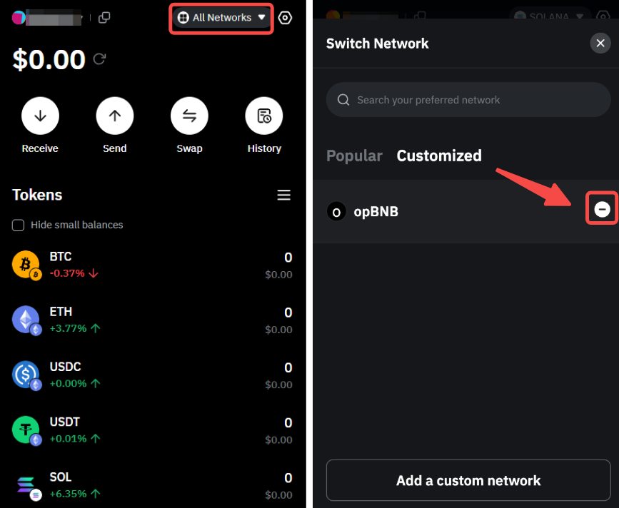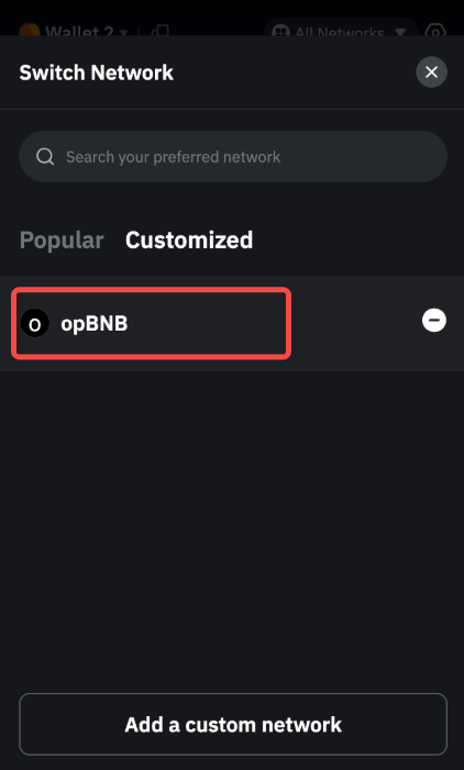 — 如果您要添加的网络已存在于 Bybit Wallet 中,则无法将其重新添加为自定义钱包。