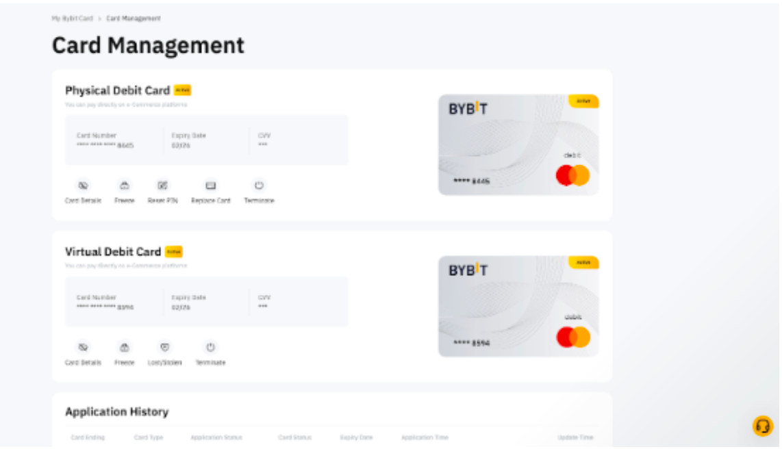 您可以在卡管理页面上管理您的虚拟和实体 Bybit Card。