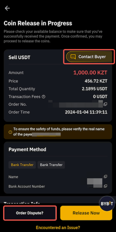 — 请注意,我们的平台严禁第三方支付。用于付款的支付账户必须与您在 Bybit 上的身份认证相同。否则,卖家有权拒绝继续与您进行交易并向您退款。