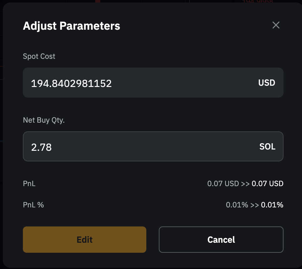 — 充值、划转和提币操作不会影响现货成本价。但是,若资产余额低于净买入数量,系统将对净买入数量进行调整,以匹配当前资产余额,此操作可能会对收益产生影响。
