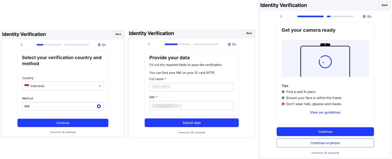 印度尼西亚居民可以使用本地证件类型完成身份认证:Nomor Induk Kependudukan(NIK)