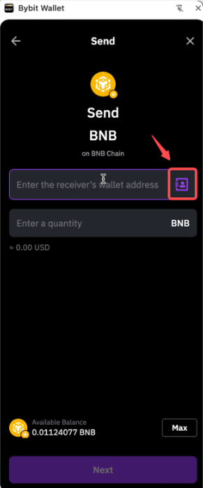 第 2 步:输入收款钱包地址,或从地址簿中选择。