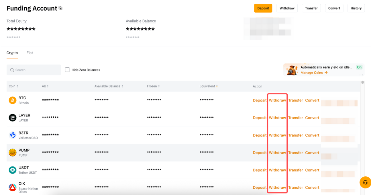 或者,请前往您的资金账户页面,在您希望提现的代币点击提币。