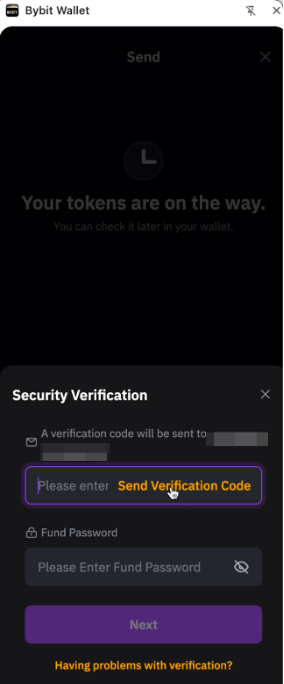 第 4 步:点击发送验证码,系统会将验证码发送至您的邮箱。请输入您的资金密码和收到的验证码。