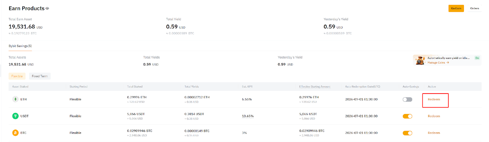 - 储蓄:收益来自 Bybit 平台的借贷活动。