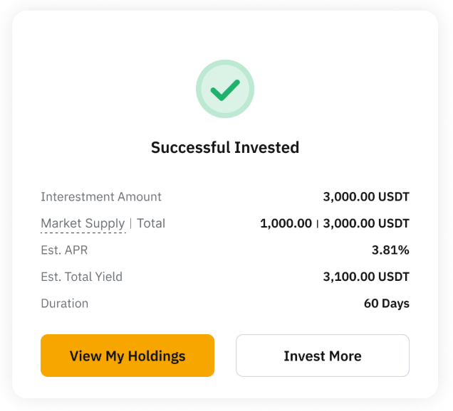 第 2 步:根据币种、期限和年化收益率选择您偏好的轻松理财方案,随后点击立即投资。