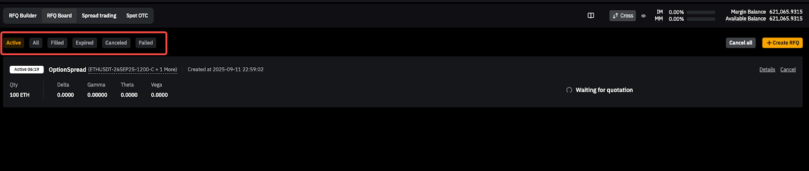 第 1 步:前往 RFQ 面板。RFQ 将根据状态分类显示: