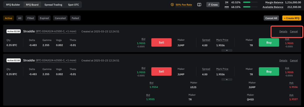 RFQ 交易页面底部会显示: