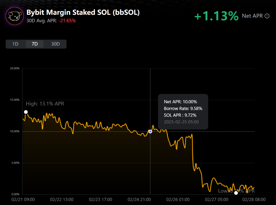 第 3 步:将鼠标悬停在年化收益率图表上,即可随时查看净年化收益率、借币利率以及 SOL 收益率。