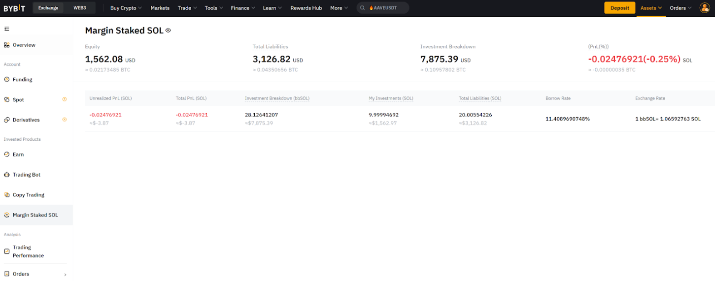 此外,您还可在杠杆质押 SOL 资产页面浏览您的盈亏、负债等信息。