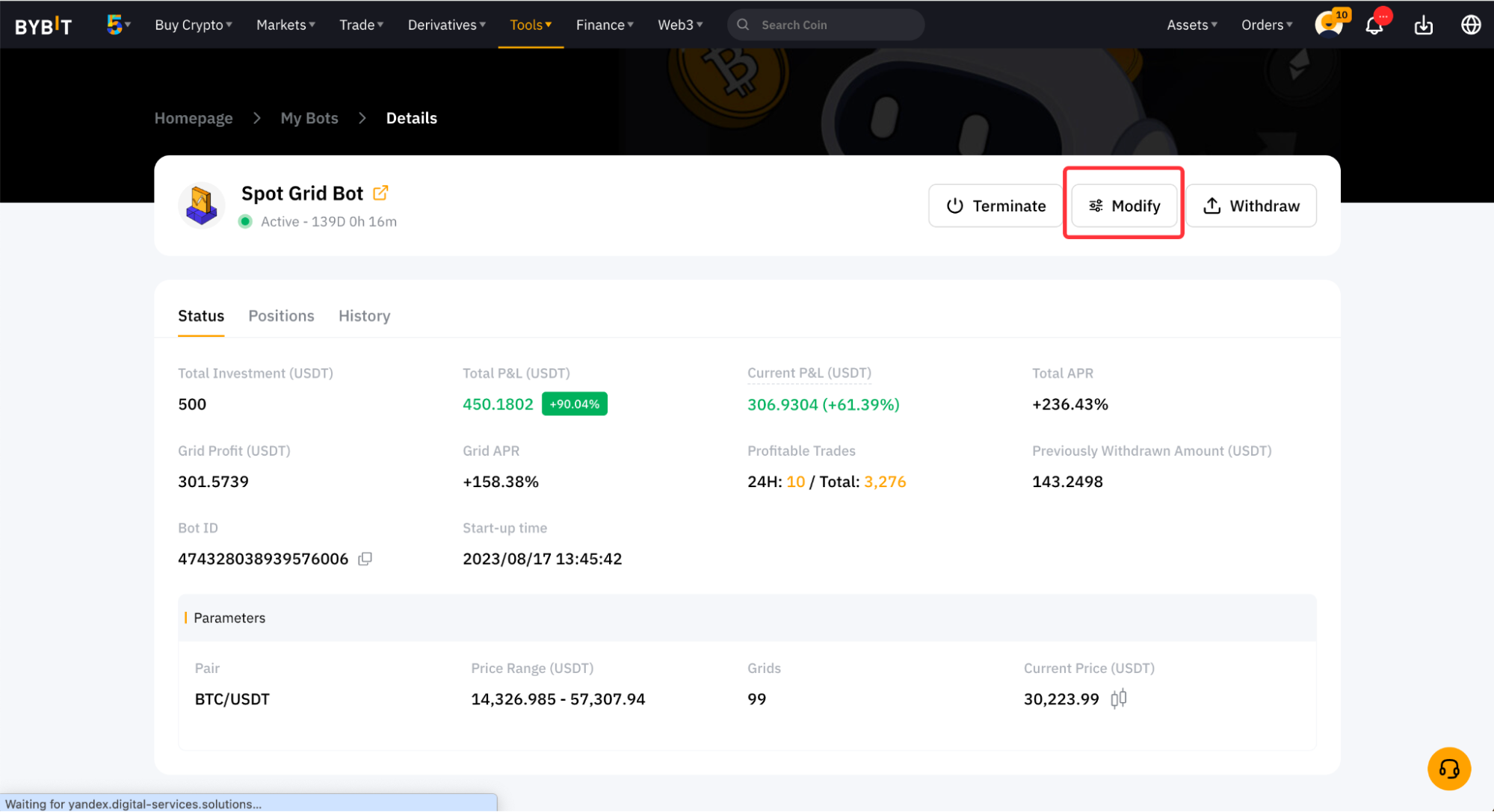 第 1 步:前往现货网格机器人详情页并点击修改。