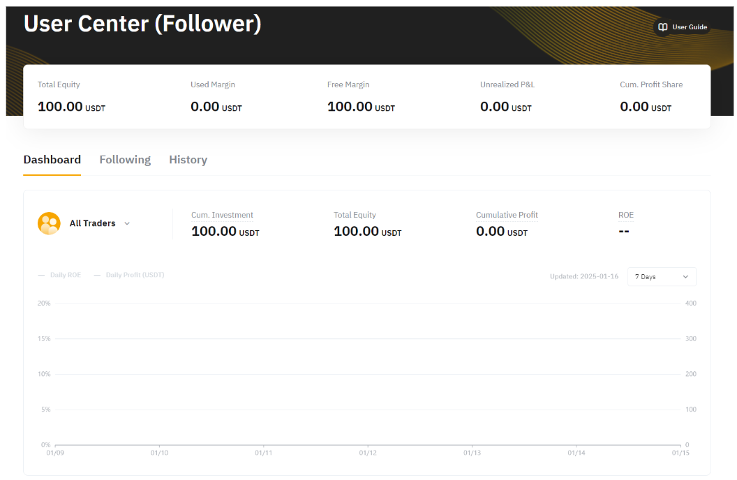 第 2 步:在跟单用户中心的个人面板下方,您可查看综合数据,包括以下参数: