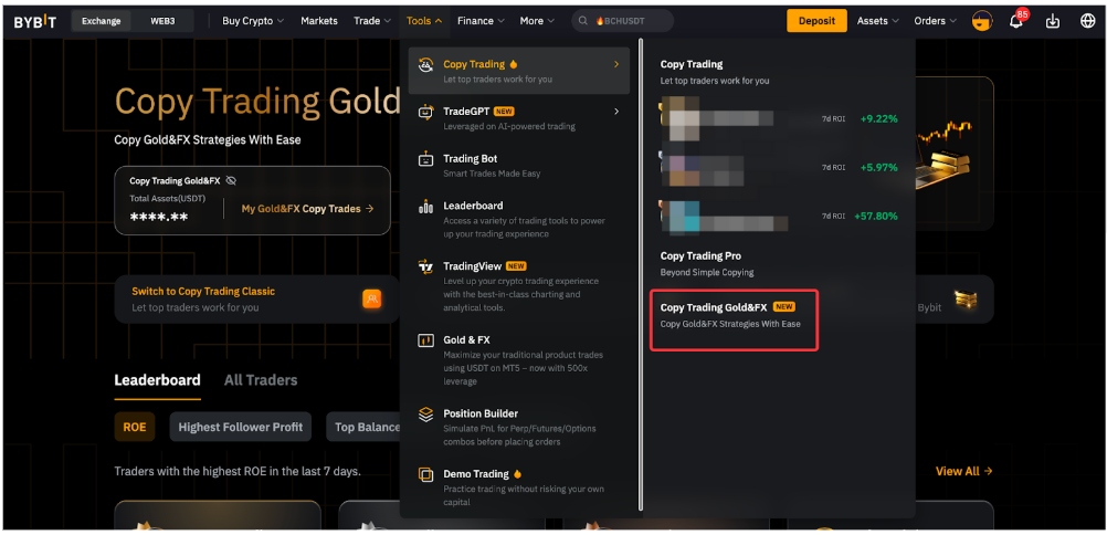 第 1 步:在导航栏中点击工具 → 跟单交易,进入TradFi跟单页面。