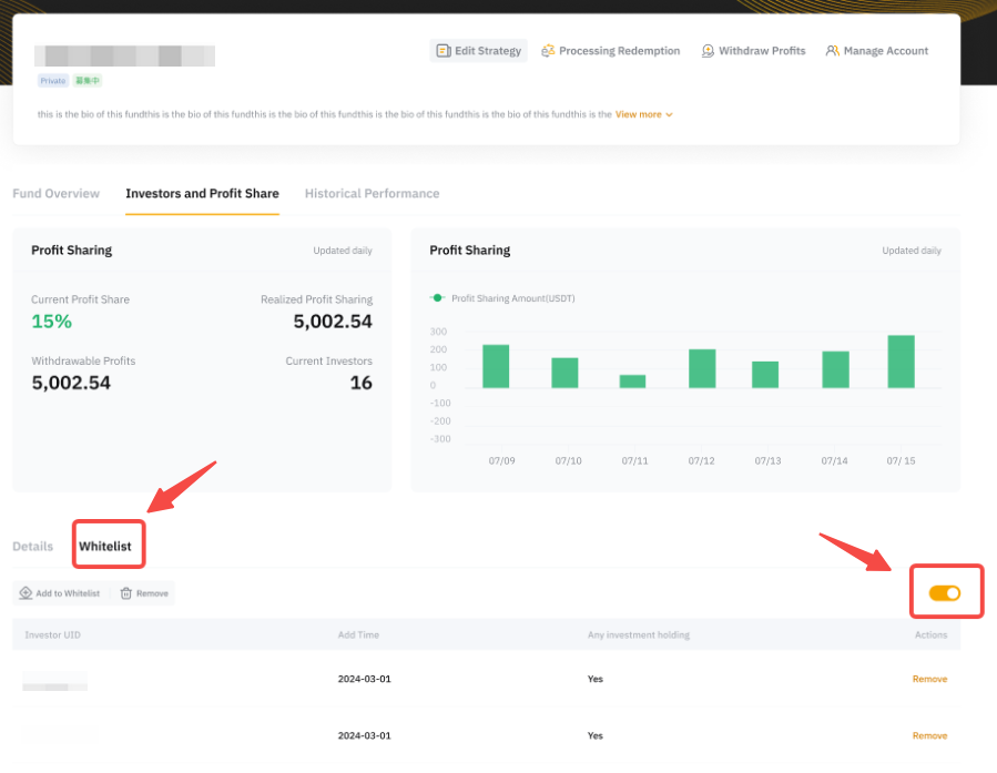 被移出白名单的投资者仅可执行赎回操作,无法追加投资当前策略或跟投任何新策略。