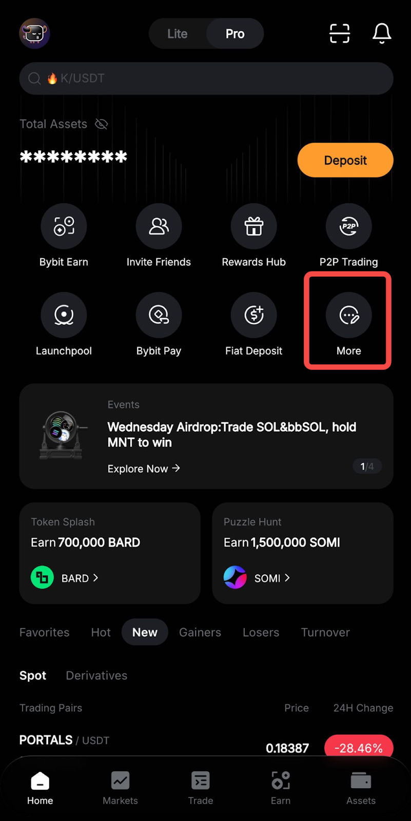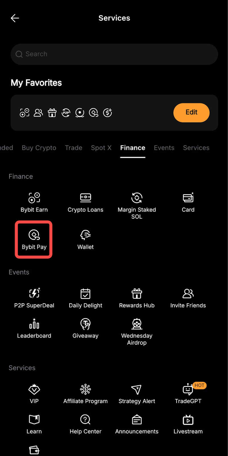 Alternatively, you can also click More → Bybit Pay. Then, tap on QR Pay to open the QR scanner to scan the payment QR code.