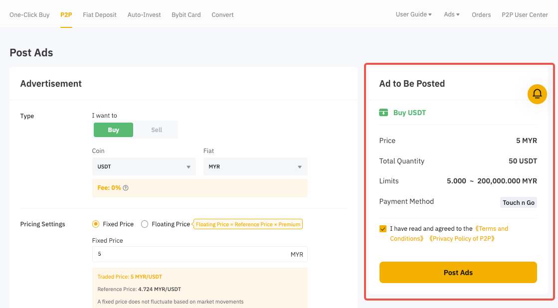 如果您是广告商,本分步指南将帮助您在 Bybit 完成首次 P2P 广告发布。