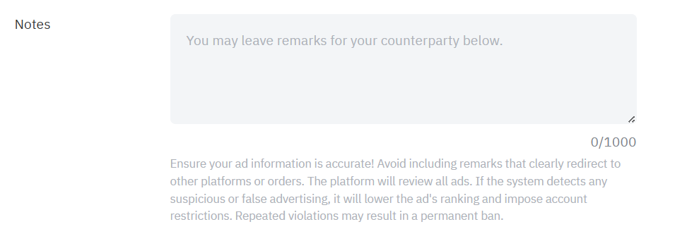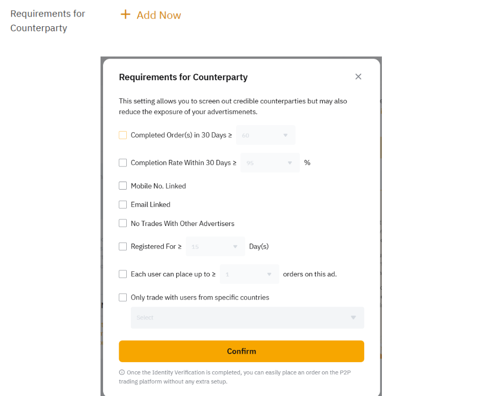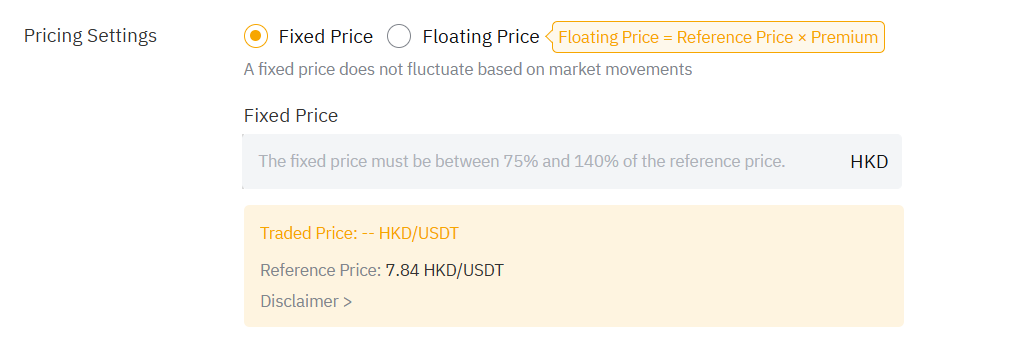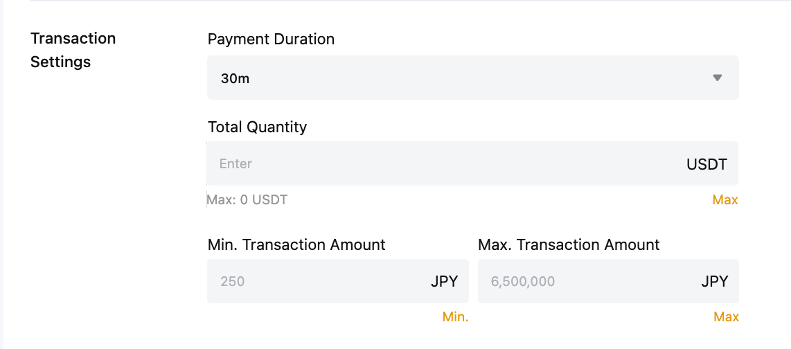 • 如需详细了解每个广告可交易的 USDT 最低和最高金额,请参阅 P2P 订单限制