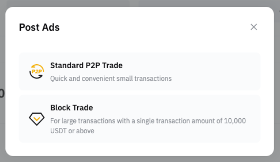 第 3 步:点击 P2P 交易或 P2P 大宗交易。欲了解发布广告的资格,请参阅本文