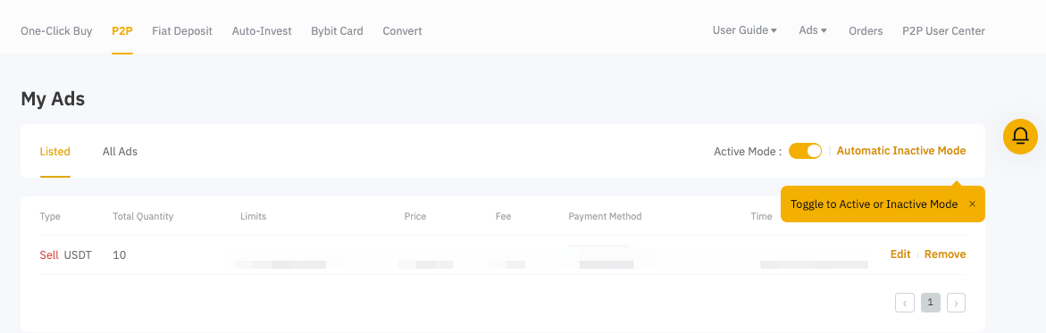 恭喜!您的广告现已成功列出。请记住,当广告处于活动模式时,广告商应保持在线上状态,以便及时回覆交易对手并及时进行谈判。要了解有关管理广告可见性的更多信息,请参阅本文