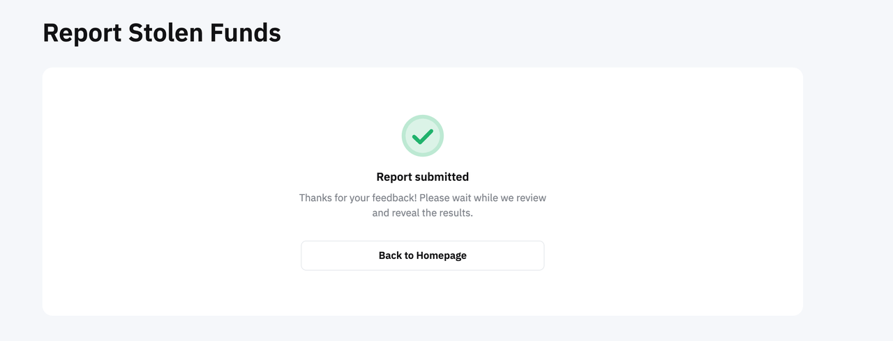 第 2 步:在举报资金被盗页面确认相关详情。