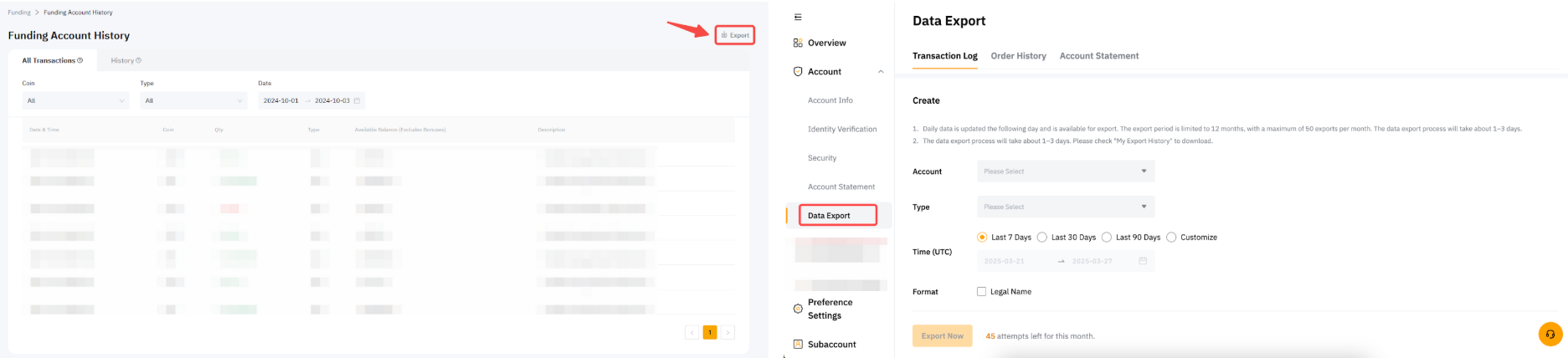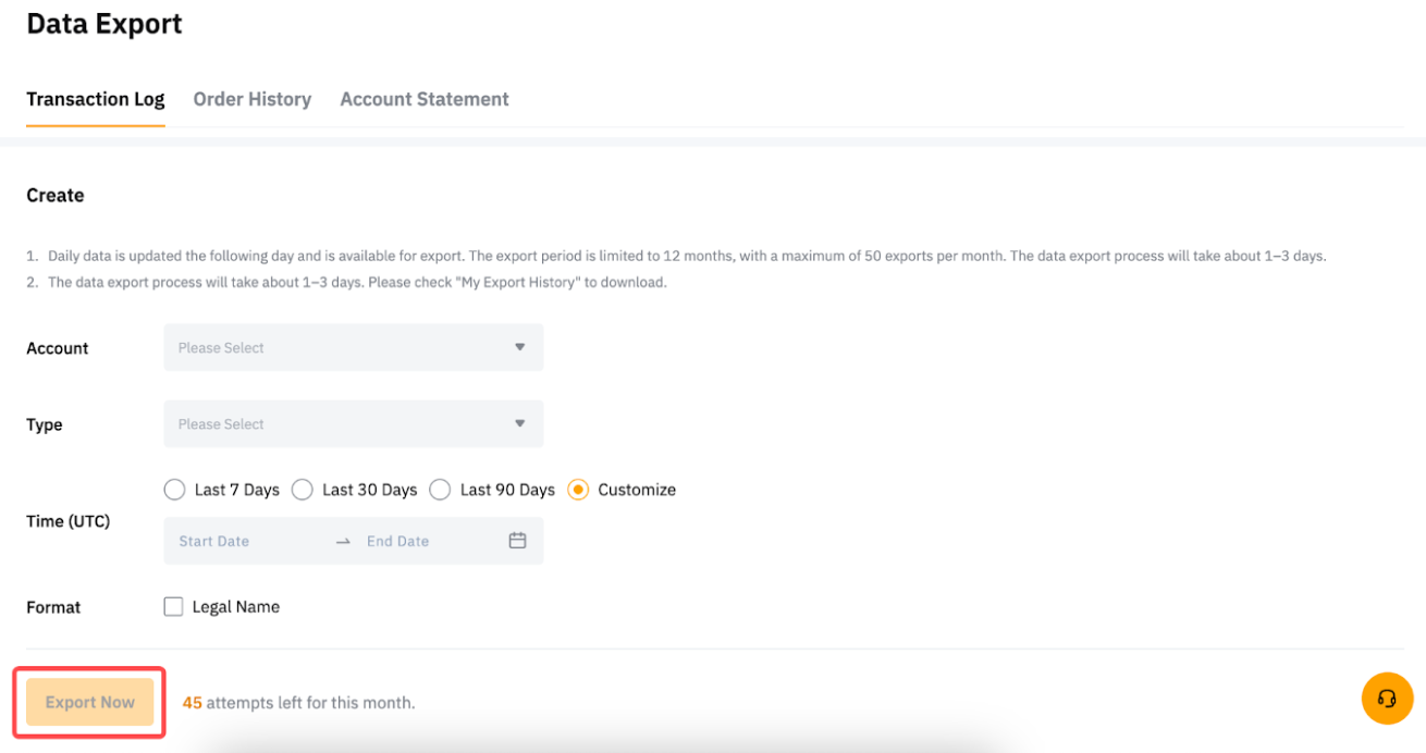 — 部分数据可能无法在账户对账单中使用,例如现货或衍生品订单历史记录。要导出这些数据,请直接前往每个产品历史记录页面,然后点击右上角的导出按钮。