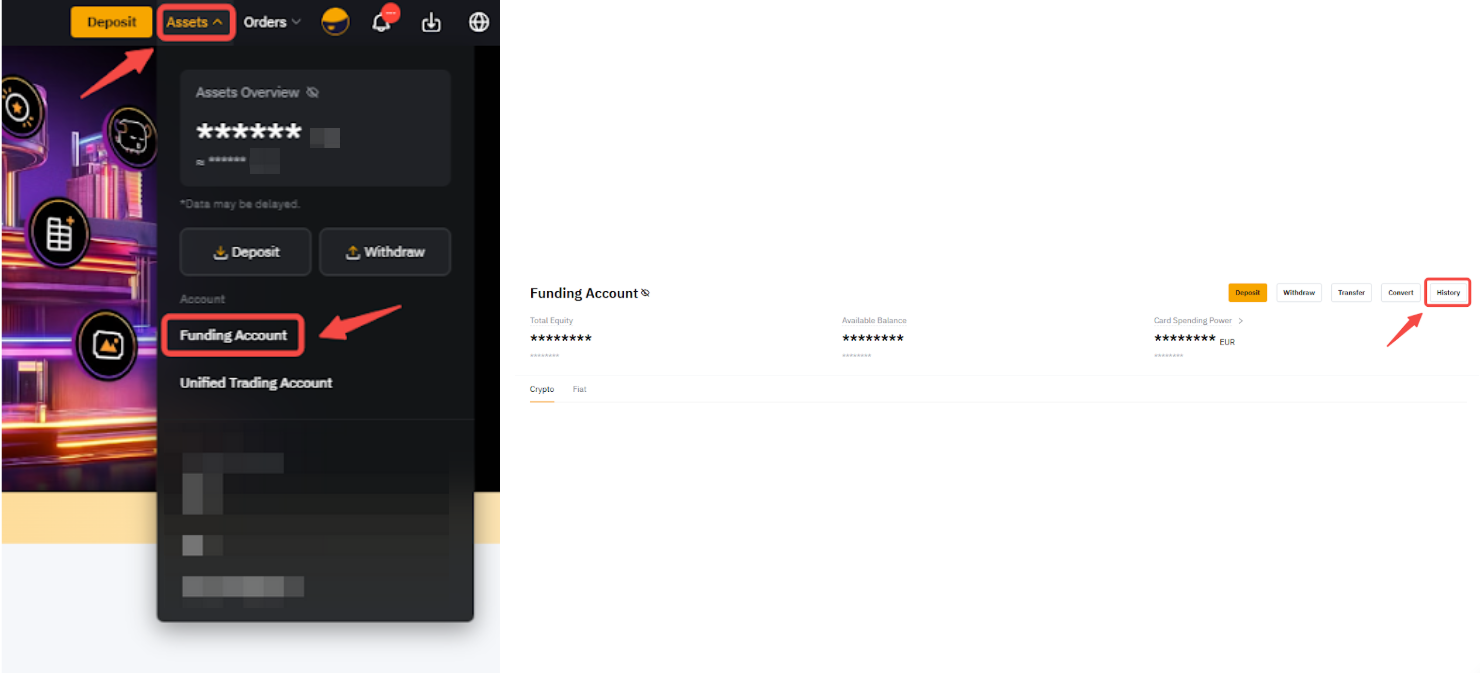 第 1 步:请点击资产 → 资金账户 → 历史记录 → 导出或前往数据导出页面。