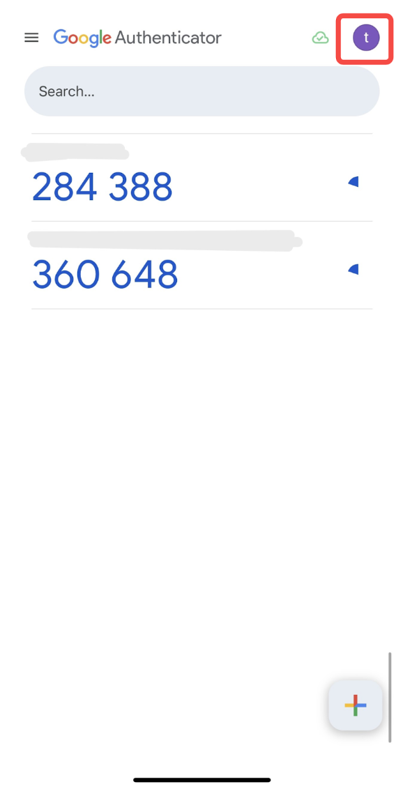 第 1 步:在您的设备上,打开谷歌身份验证器 App。点击谷歌身份验证器页面右上角的个人资料图标。