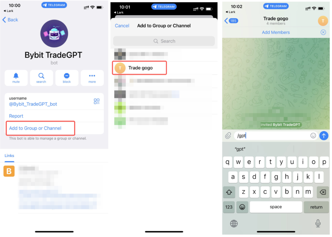 a. 在 Bybit TradeGPT Info 页面上点击 Add to Group or Channel。