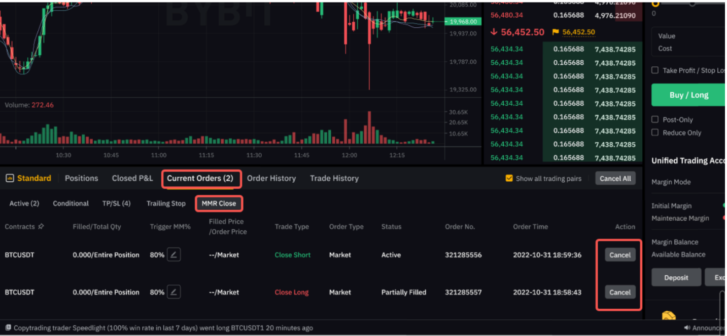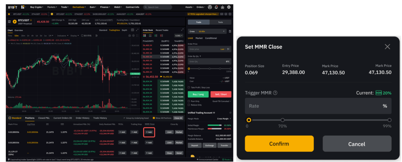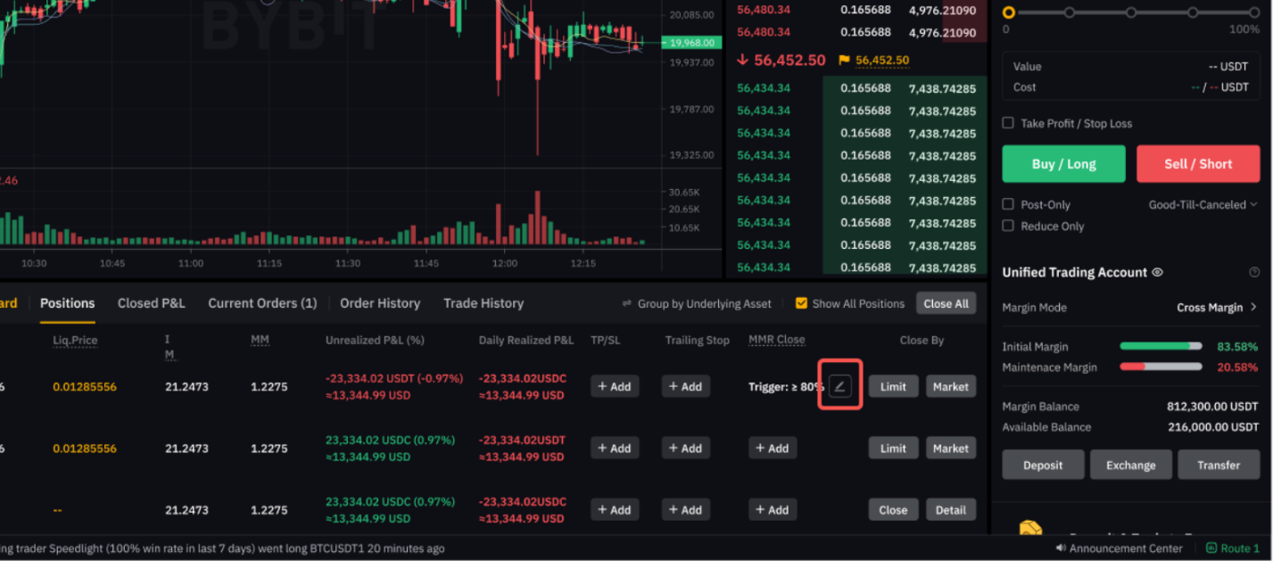 为实现更全面的风险管理,Bybit 针对 UTA 推出了维持保证金率 (MMR) 平仓单。通过这一工具,交易者能够主动控制账户风险,更灵活地抵御加密货币交易伴随的波动性。