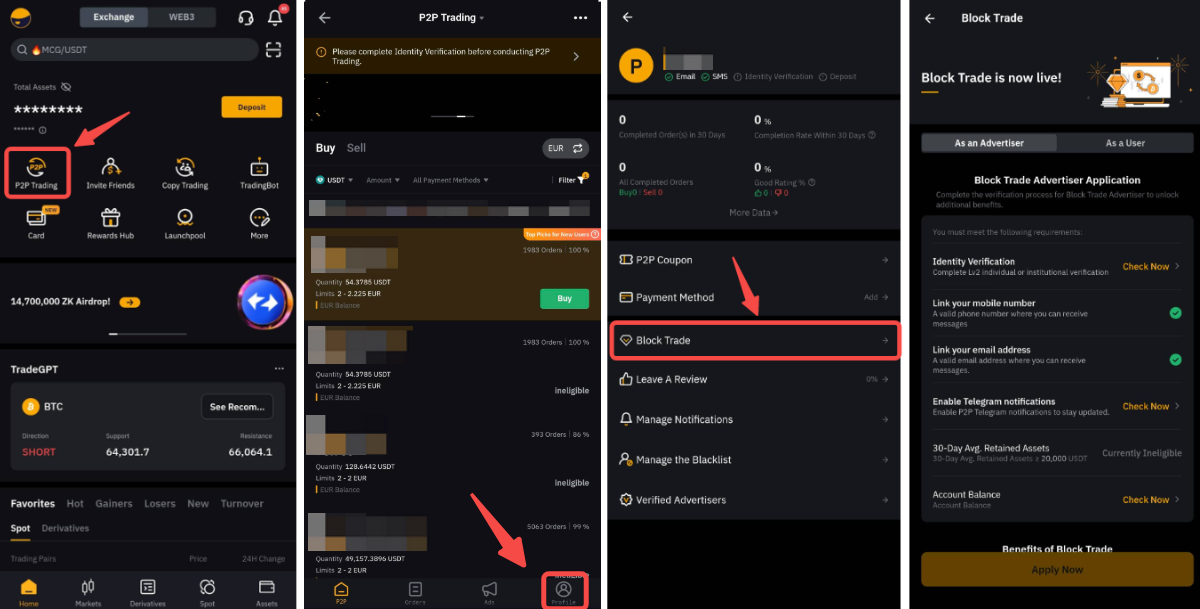 广告投放翻倍:创建最多 4 个大宗广告和 4 个常规 P2P 广告(同一交易对)。